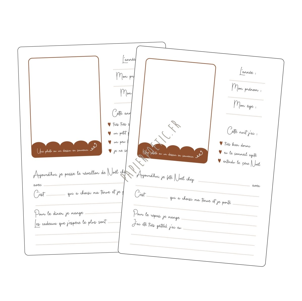 Pour un joli souvenir de ses premiers Noël ♥♥♥ , voici deux cartes : le réveillon de Noël + le jour de Noël ! Complétez le dos des cartes avec chaque détail de ces journées ♥ (à garder précieusement) N’oubliez pas de faire une photo souvenir de votre enfant avec sa carte dans les mains 🙂 Impression en A5 coins arrondis sur papier aquarelle 300g