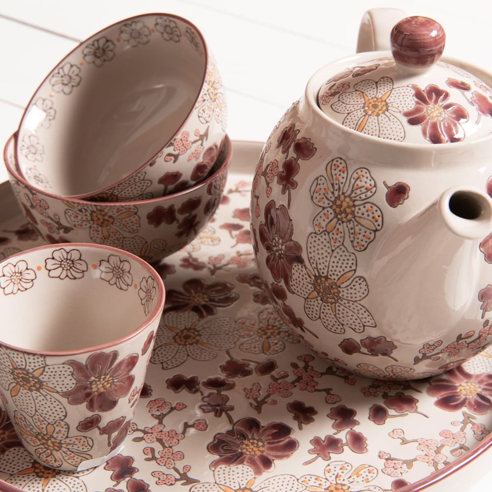 Inspiré par la délicatesse des estampes japonaises, le motif Kiyo mêle fleurs stylisées, fines branches et teintes chaleureuses dans une harmonie subtile de bordeaux, safran, crème et rose poudré. Chaque pièce dévoile une composition florale expressive, à la fois douce et graphique, qui évoque la beauté de la nature au fil des saisons.