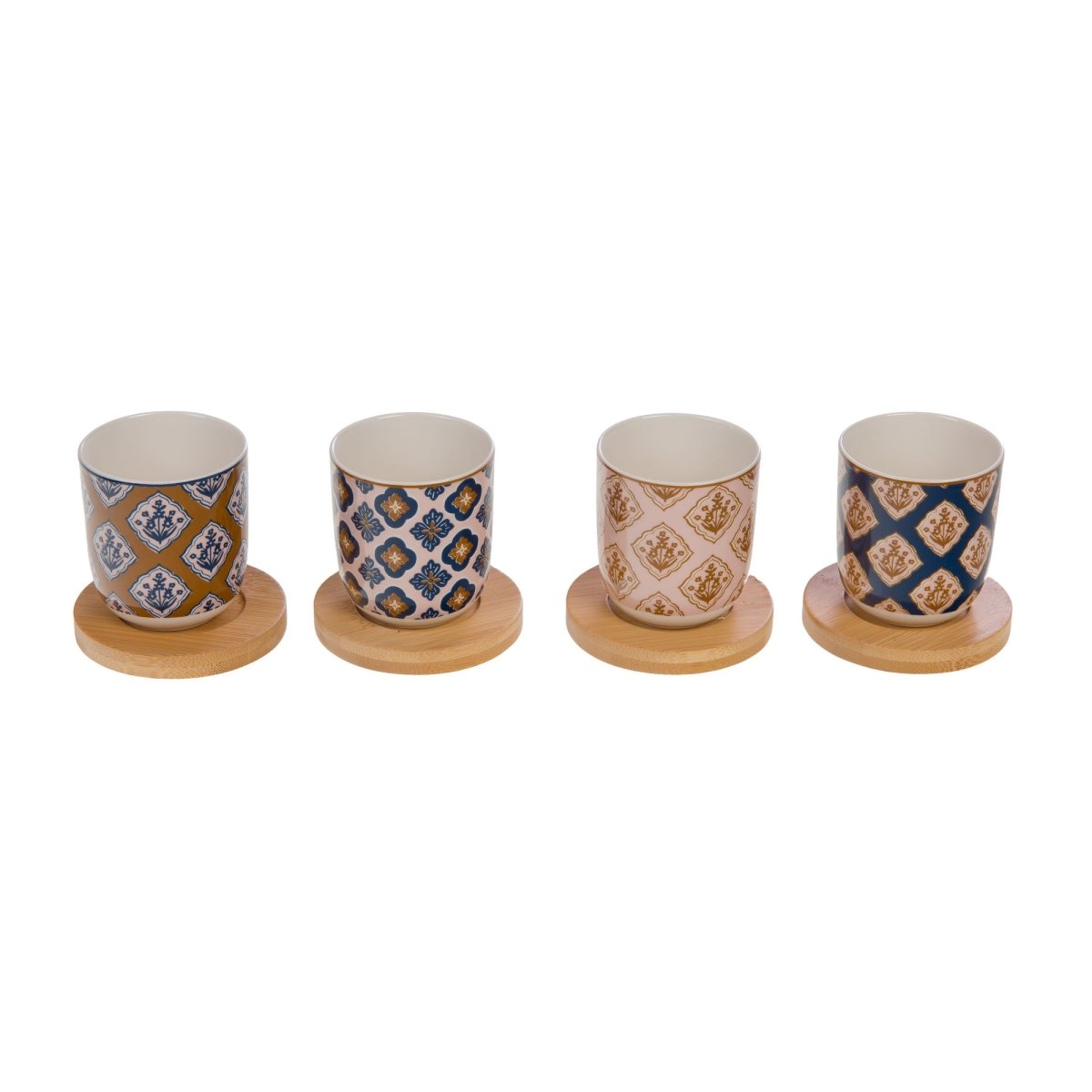 Ce coffret réunit 4 tasses expresso en porcelaine fine New Bone China, parfaites pour sublimer vos moments café. Chaque tasse est accompagnée d'une soucoupe en bois clair, qui apporte chaleur et élégance à votre table. Avec leurs dimensions compactes (6x6x3 cm), ces tasses sont spécialement conçues pour rehausser l’expérience de dégustation de votre café expresso au quotidien.