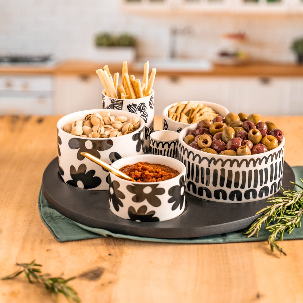 Le service apéritif 6 pièces Kimani, avec ses 31 cm de diamètre, est idéal pour sublimer vos moments de convivialité. Sa conception raffinée et fonctionnelle vous permet de présenter vos amuse-bouches avec style, tout en optimisant l'espace sur votre table. Laissez-vous séduire par son design moderne et sophistiqué, parfait pour un apéritif réussi.